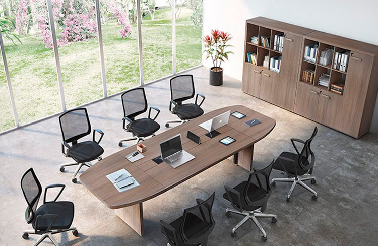 Além disso, o tamanho da mesa é um ítem crucial, já que a sala de reunião deve ter um espaço de circulação confortável, que permita o deslocamento sem a necessidade de pedir licença ao outro presente.