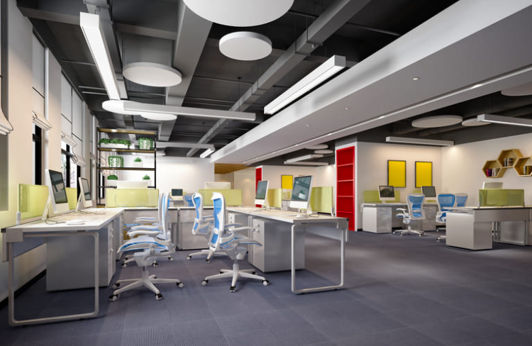 - Acentos de cores: Pontos de cores vibrantes para destacar áreas específicas do escritório.